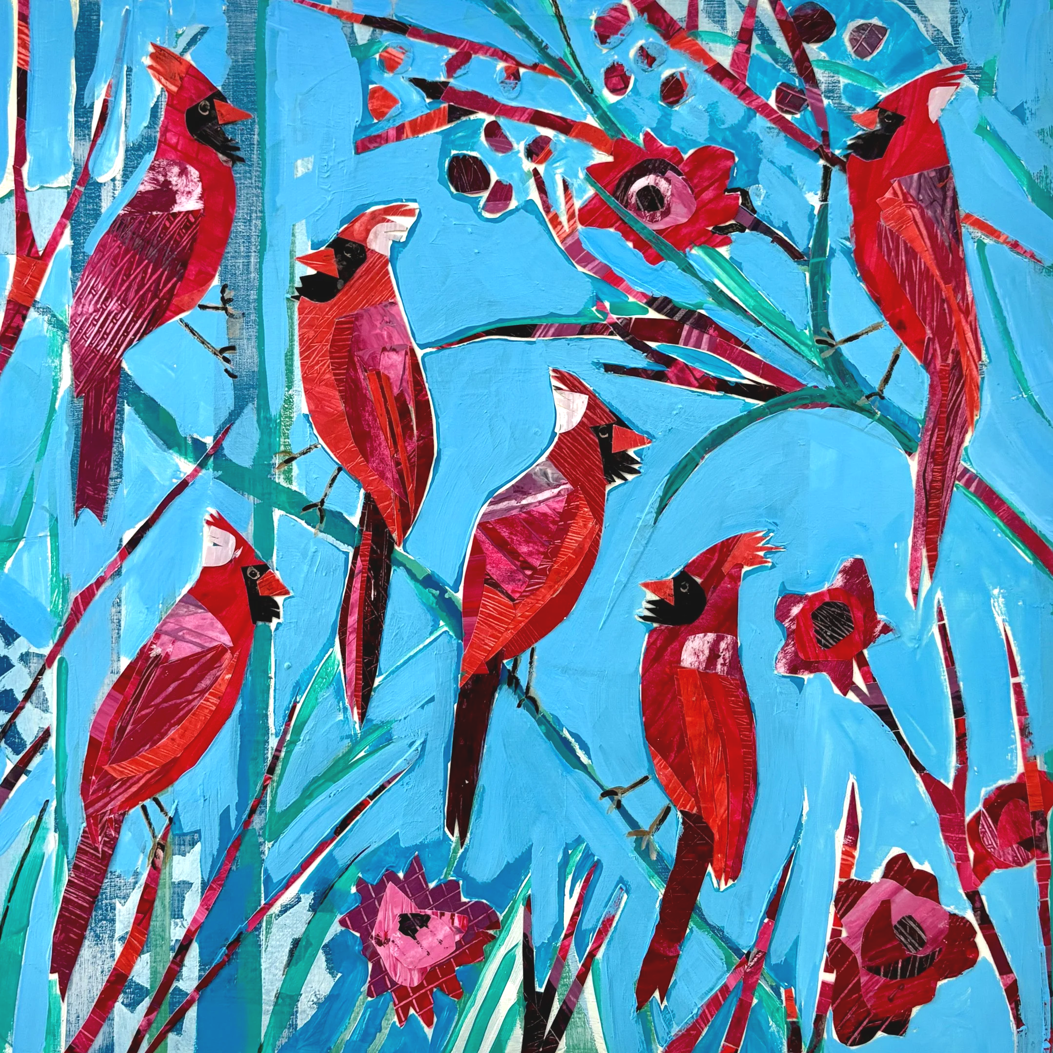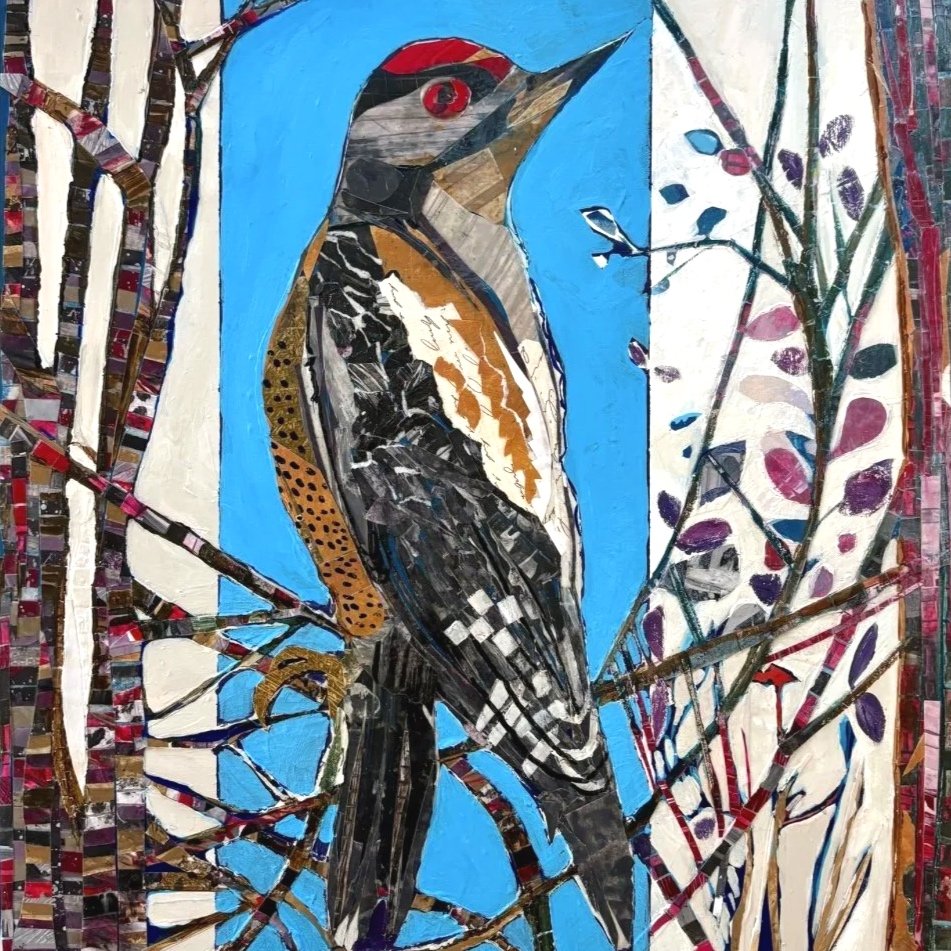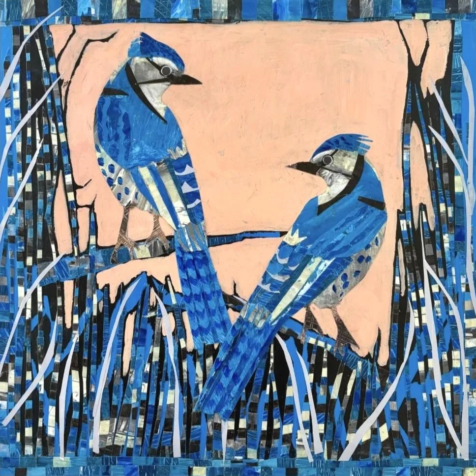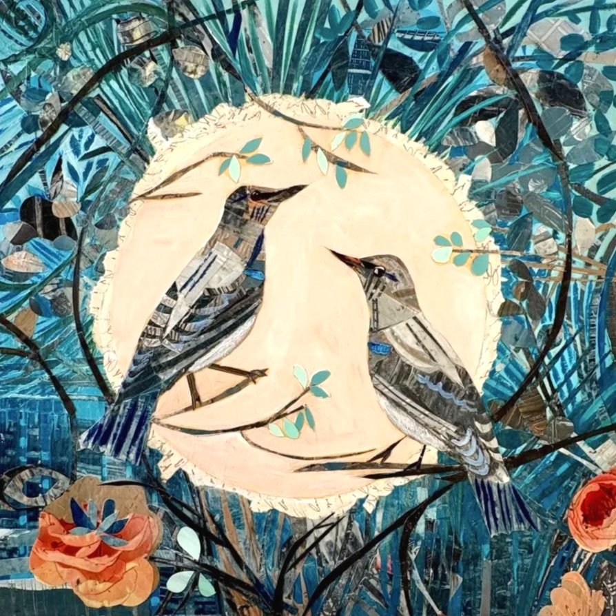 This was a beautiful project to be part of. The children at RES Elementary School participated in the creation of these mixed media collages. The children created a selection of collage papers during their art lessons after looking at the birds in detail. I used their papers to create the bird compositions. I also gave each wooden cradled board a super shiny topcoat of resin. These are to be part of the school auction in April 2026 which raises money for the school.